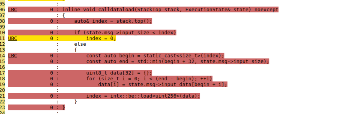 Here BASEis original tests, PATCH is the ported test, and DIFF is the coverage difference on EVMONE. Open evmtest_coverage/coverage/DIFF/index.html in browser: